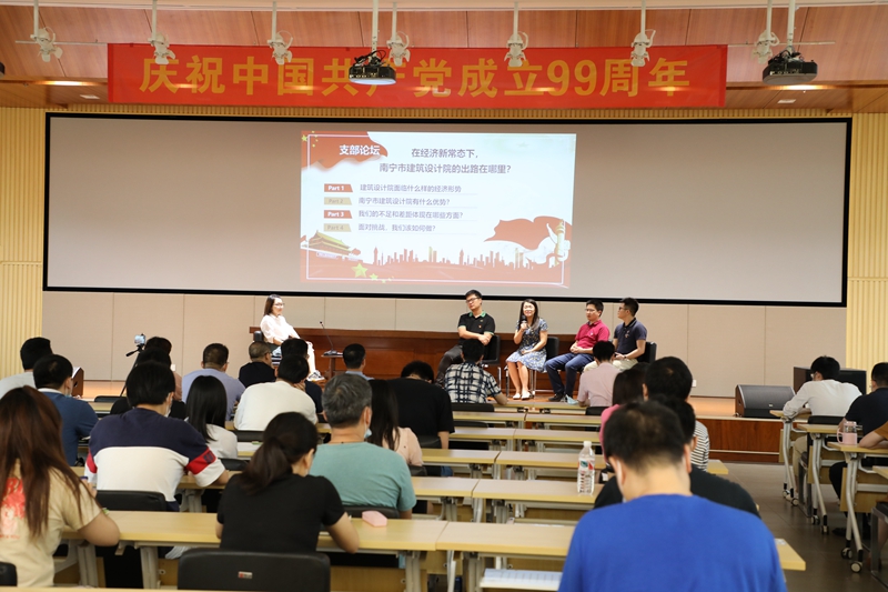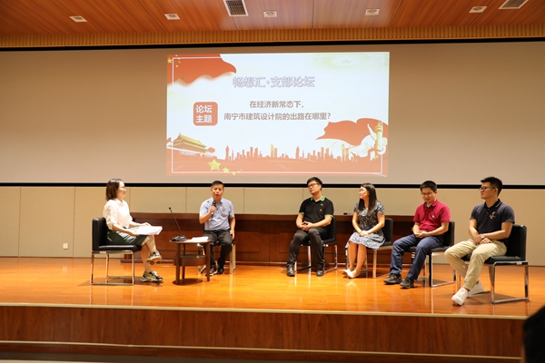 活動在奏唱國歌中拉開序幕,“暢想?yún)R·支部論壇”是本次主題黨日的重點內(nèi)容。在蔣晏平同志的主持下,黃磊群、何奇芳、王維紅和覃敏貴等4位黨員以論壇嘉賓身份圍繞“在經(jīng)濟新形勢下,南寧市建筑設計院的出路在哪里?”這一主題進行了激烈而深入的探討,主持人還不時與場下的黨員互動,大家結(jié)合自己的工作實際,各抒己見,暢所欲言,碰撞出更多新思路、新方向的火花。其中王維紅同志提出的基層黨建工作是黨的組織建設的重要環(huán)節(jié),是基層單位完成各項工作任務的根本保證,因此單位的發(fā)展必須以黨建工作為引領的觀點得到了廣大黨員的認同,會場響起熱烈的掌聲。
