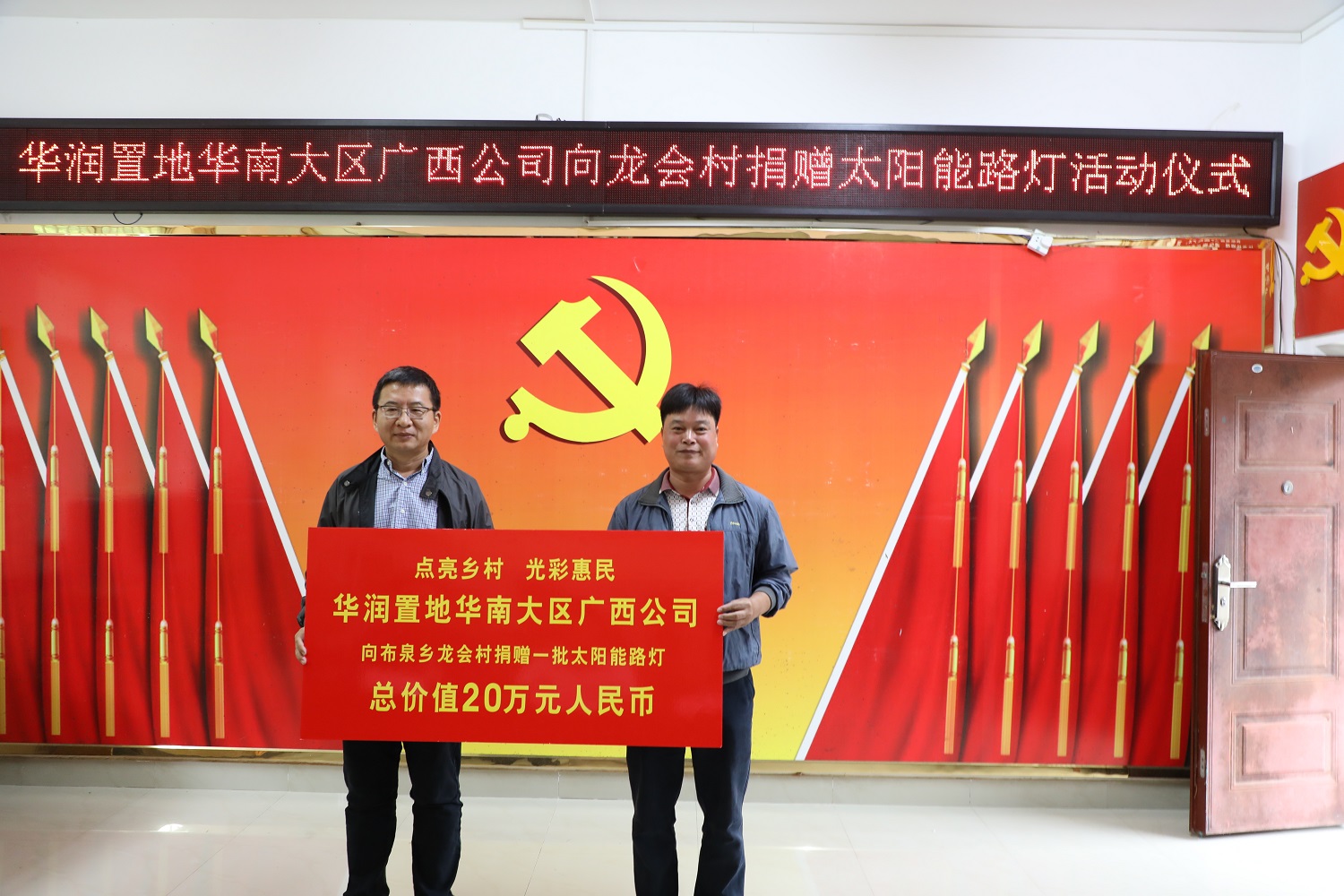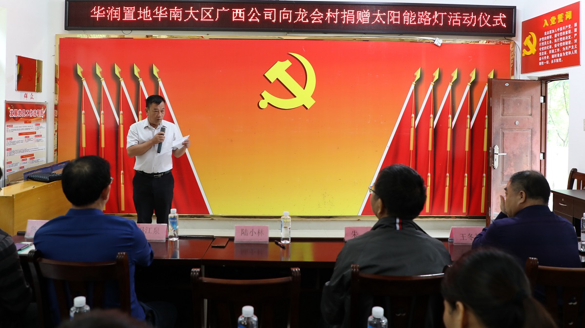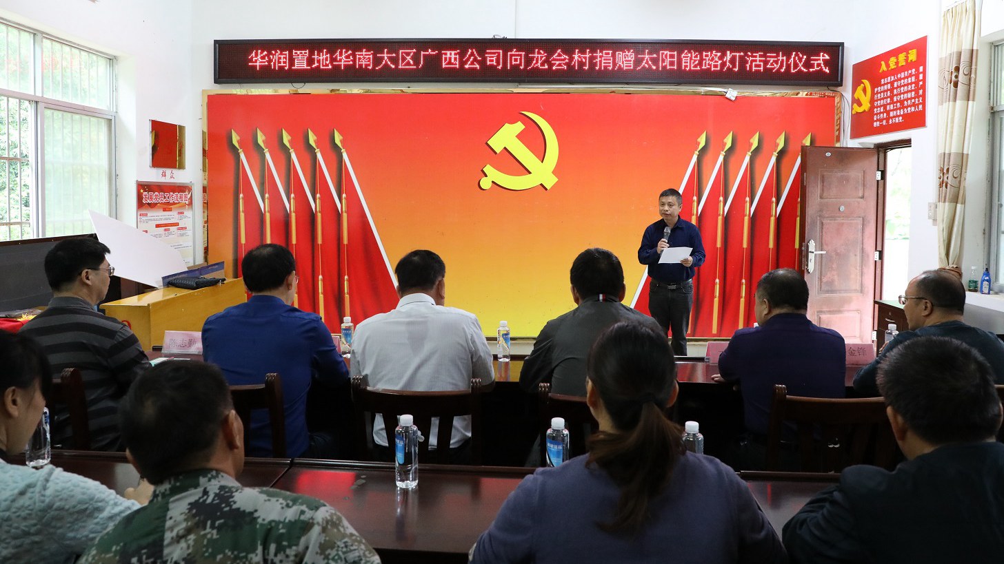 10月14日,南寧市自然資源局?jǐn)y愛心企業(yè)華潤置地華南大區(qū)廣西公司到我院結(jié)對幫扶貧困村布泉鄉(xiāng)龍會村開展扶貧捐贈活動,向龍會村捐贈一批價(jià)值20萬元的太陽能路燈,助力鄉(xiāng)村振興。