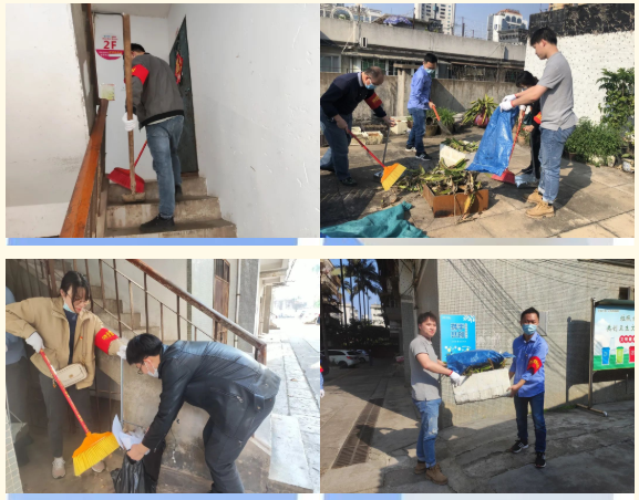當天下午,黨員志愿者們戴上志愿者袖標,拿上垃圾鏟、垃圾袋、掃把等清潔工具來到東一里社區(qū)的老舊小區(qū)。經(jīng)志愿者們現(xiàn)場了解,該小區(qū)居民樓建造時間較長,老年住戶較多,樓頂堆放雜物日積月累,樓道里也有大樓廢棄的家具、物品,不僅影響了小區(qū)清潔美觀,還存在較大的火災隱患。了解情況后,志愿者們立即挽起袖子,明確分工后便熱火朝天地穿梭在公共走道、樓棟間開展志愿服務。