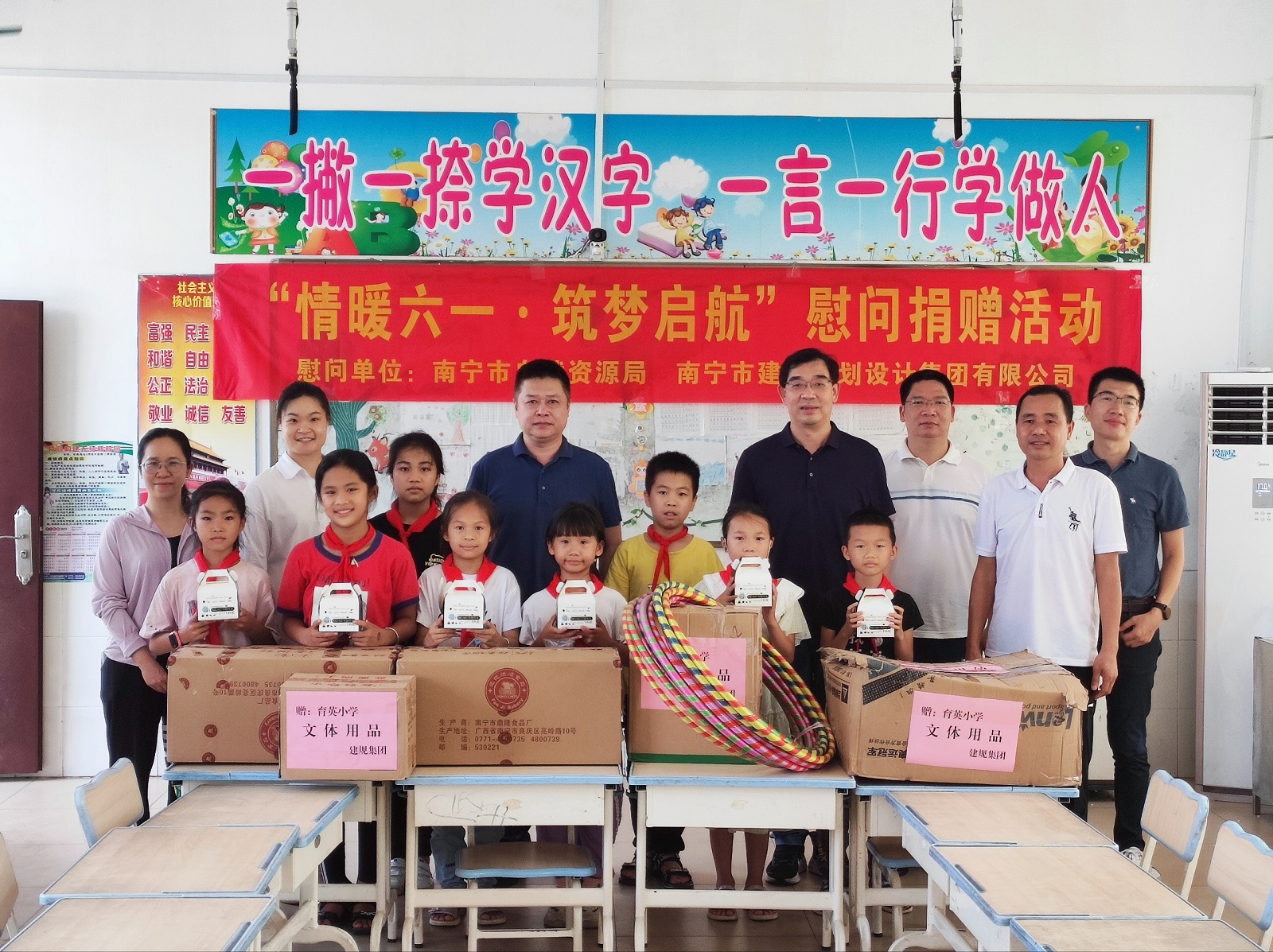 5月30日至31日,值此第72個國際兒童節(jié)到來之際,南寧市自然資源局副局長、三級調(diào)研員李伍堅(jiān),局黨組成員、副局長蔣東勇分別帶隊(duì)到集團(tuán)定點(diǎn)幫扶的上林縣大豐鎮(zhèn)擁軍村玉柴希望小學(xué)、隆安縣古潭鄉(xiāng)育英村小學(xué)開展“情暖六一·筑夢啟航”慰問活動。