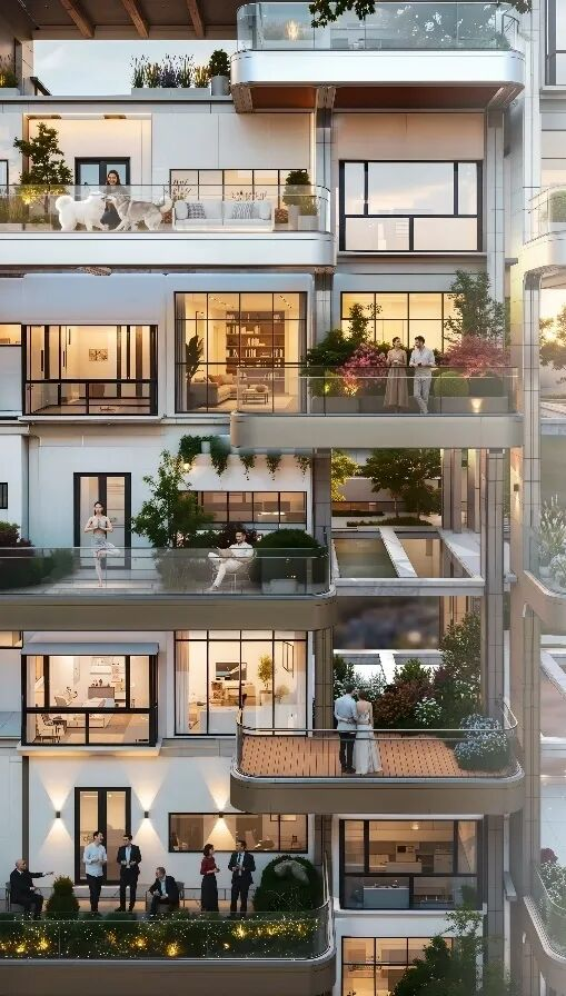 我們相信,好房子不僅關(guān)乎室內(nèi),更關(guān)乎社區(qū)。在標(biāo)準(zhǔn)層,我們設(shè)置了戶外共享花園。配合景觀螺旋梯貫通上下樓層,打破了傳統(tǒng)住宅樓層間的絕對封閉。鄰里間在這里可以實現(xiàn)“拜訪不入戶,串門不打擾”,在增加空間趣味性的同時,有效增進(jìn)了鄰里感情,構(gòu)建和諧溫暖的社區(qū)氛圍。