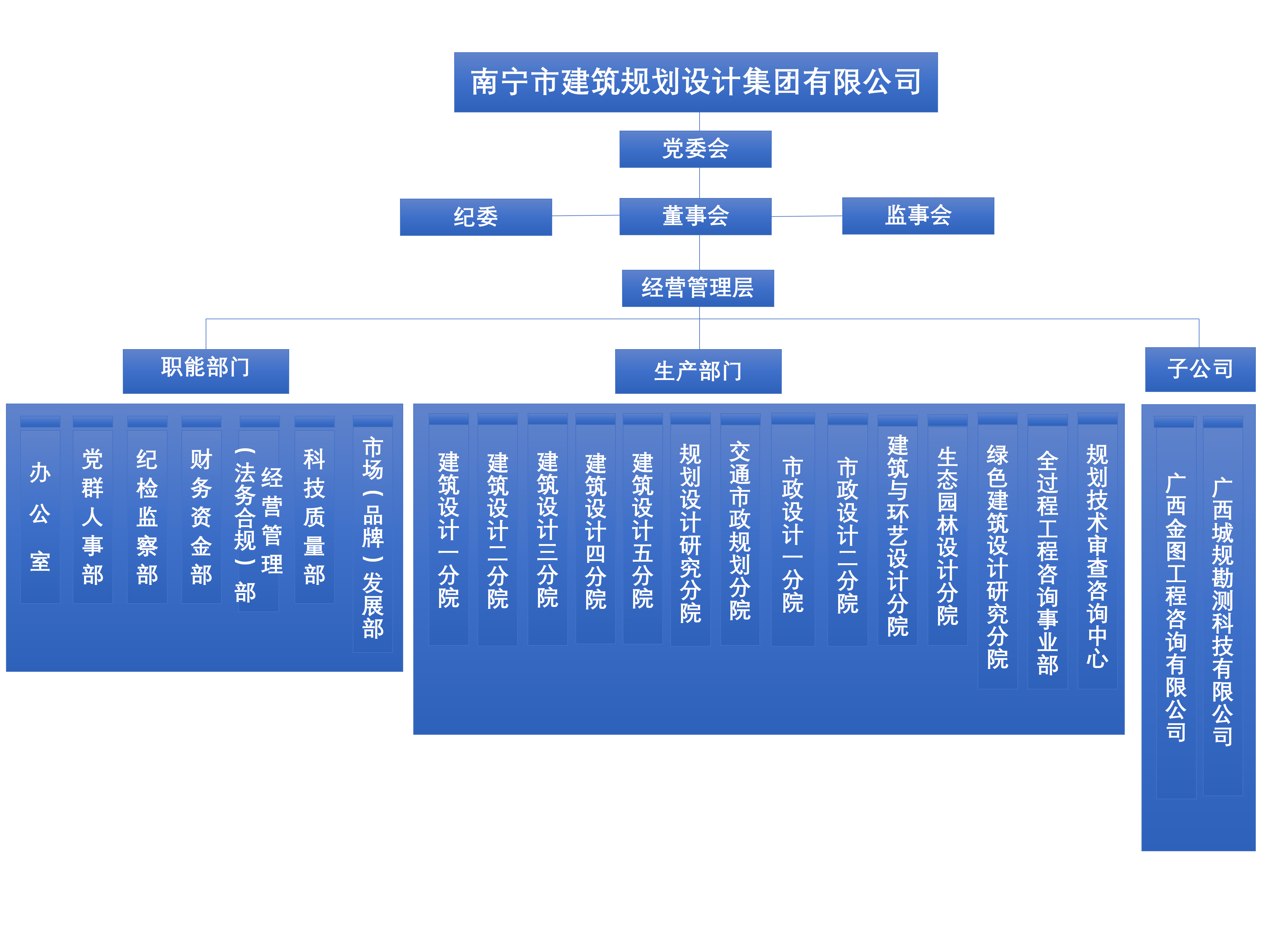 集團(tuán)按照現(xiàn)代企業(yè)制度和法人治理結(jié)構(gòu)要求,設(shè)有“三會一層”,即黨委會、董事會、監(jiān)事會和經(jīng)理層,內(nèi)設(shè)7個職能部門和14個業(yè)務(wù)生產(chǎn)部門,下屬2個全資子公司。